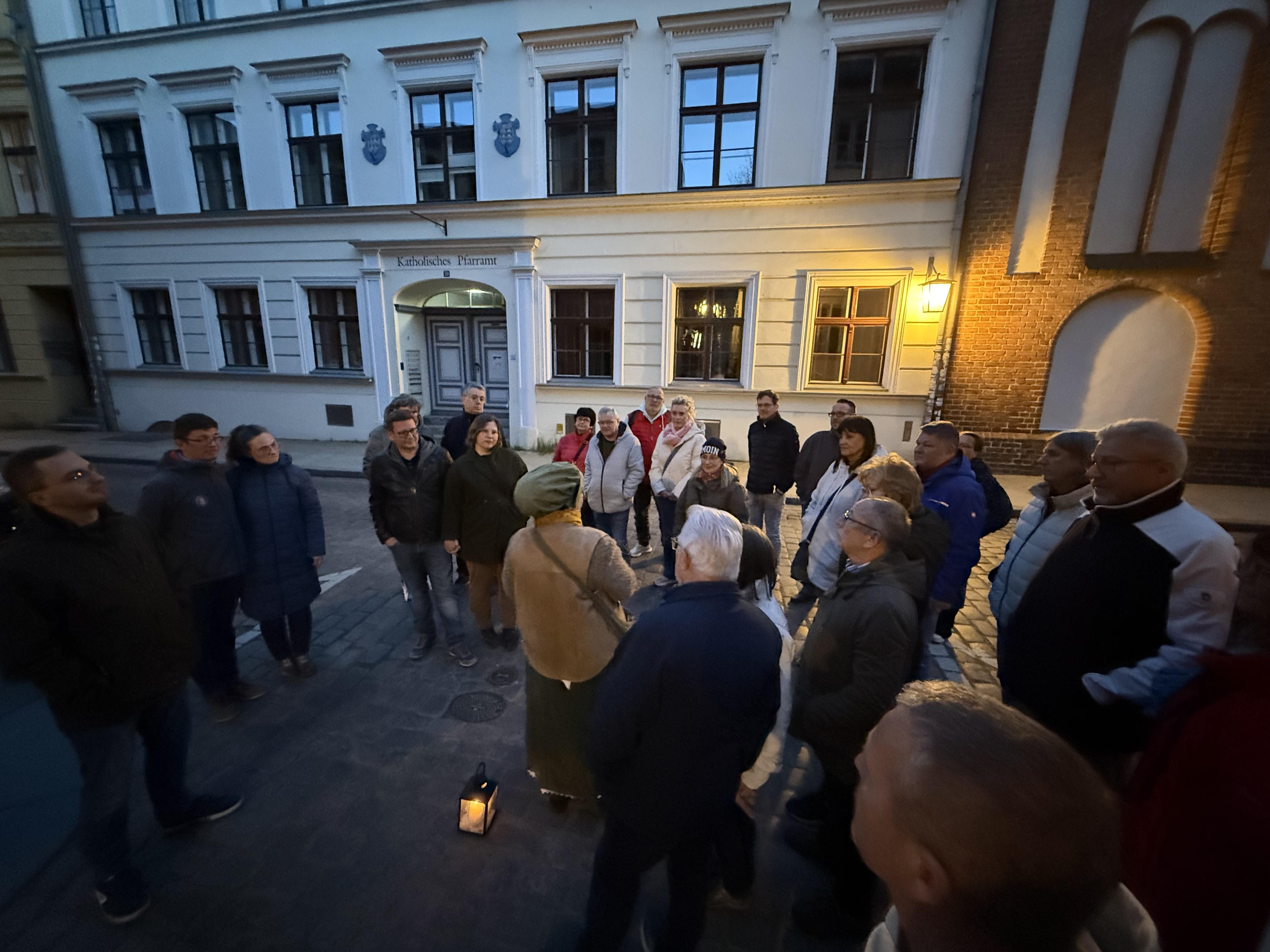 Besonders bereichernd war das gegenseitige Kennenlernen, da in den vergangenen Monaten neue Vorsteher beauftragt wurden. In persönlichen Vorstellungen, gemeinsam mit ihren Partnern, wurde schnell spürbar, wie vielfältig und zugleich verbunden die Gemeinschaft ist. Es entstand von Anfang an eine herzliche, offene Atmosphäre, die das gesamte Wochenende trug. Der Freitag klang nach einem gemeinsamen Abendessen mit einer lebendigen und kurzweiligen Führung durch Stralsund aus – ein erster gemeinsamer Weg, der Gespräche vertiefte und Nähe entstehen ließ.